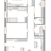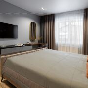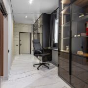В доме расположено 3 спальни, гардеробная, рабочий кабинет и функциональный санузел.