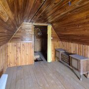 - Двухэтажный компактный летний домик площадью 21,3 кв.м (36,2 по СНБ) органично вписывается в общий дизайн участка, создавая уютное место для отдыха.