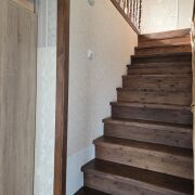 Дом блочный, утеплен и оштукатурен. В доме печное отопление на первом этаже (печь-камин отапливается твердотопливными брикетами или дровами), на втором этаже, электрическое отопление. Водоснабжение - скважина, местная канализация с автоматической системой очистки сточных вод, газ по улице. На первом этаже кухня и просторная гостинная, на втором этаже 3 спальных комнаты с актуальным ремонтом. На первом этаже также располагается кухня с выходом в подвальное помещение, сан.узел совместный с душевой