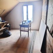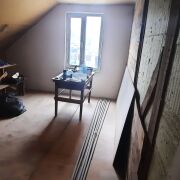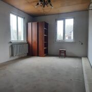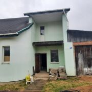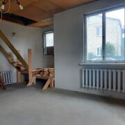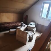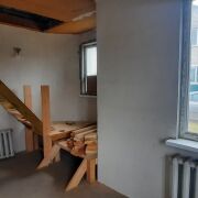 На первом этаже просторная гостиная, кухня 14м2, санузел. установлены стеклопакеты, выполнена стяжка, выровнены и прошпаклёваны стены, установлен новый двухконтурный газовый котел, закуплена керамическая плитка на кухню. На второй этаж ведет деревянная лестница (материалы закуплены), там расположены еще 3 комнаты. Потолки утеплены и подшиты дсп.