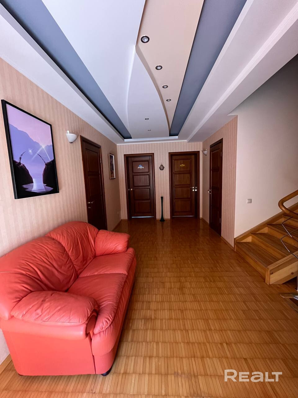 - 2 этаж: 4 изолированные спальни, 2 ванные комнаты, гардеробная, балкон