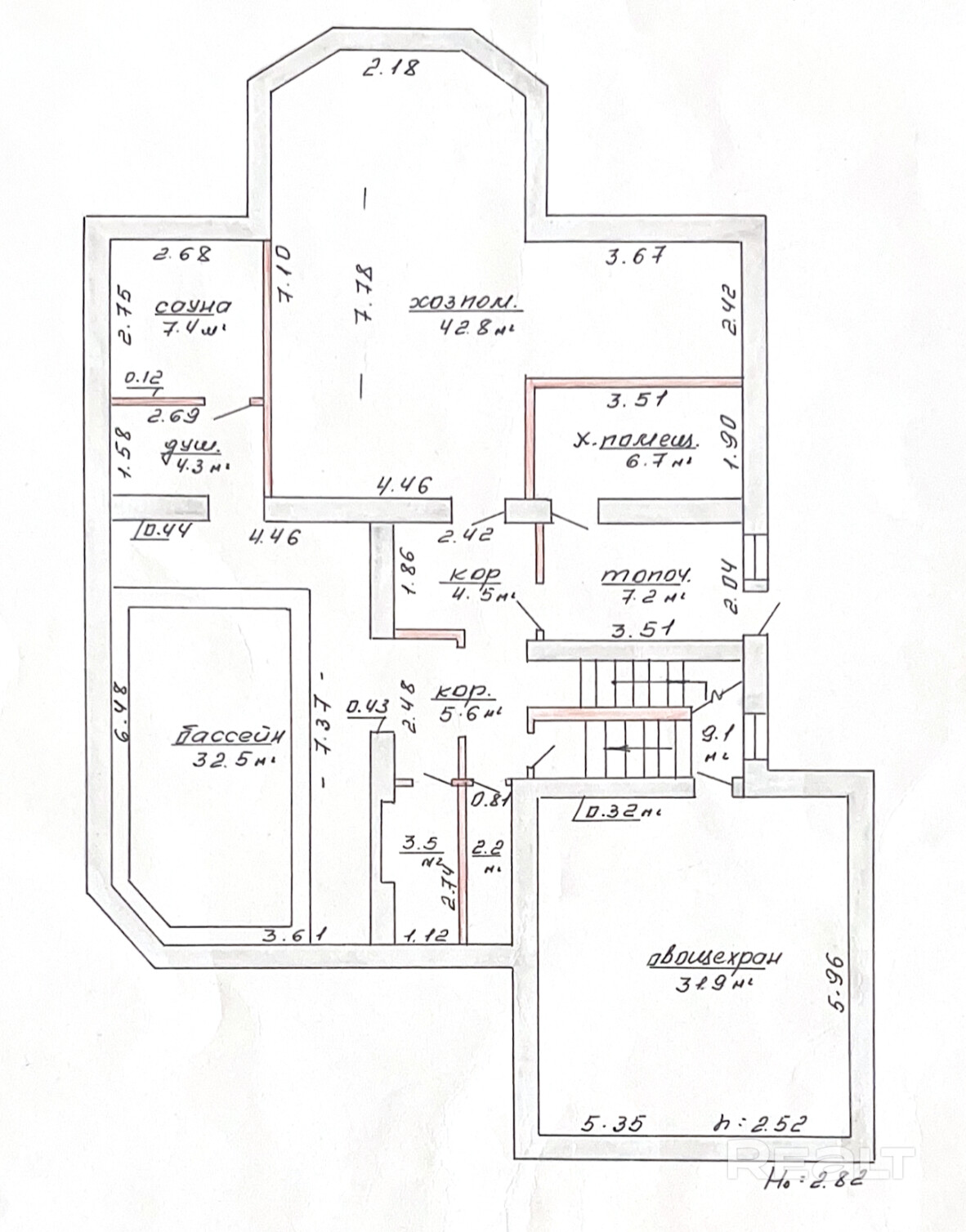 - Цокольный уровень: приточно-вытяжная вентиляция, бассейн, сауна, тренажёрный зал, душевая, санузел