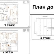 2 этаж: 3 спальни, санузлы, холл.