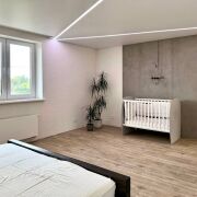 - стены: газосиликатные блоки толщиной 500мм, что позволило добиться высокой термоизоляции без дополнительных утеплителей и исключить смещение точки росы внутрь стены (важно для газосиликата). Во всём доме установлены современные энергоэффективные окна.
