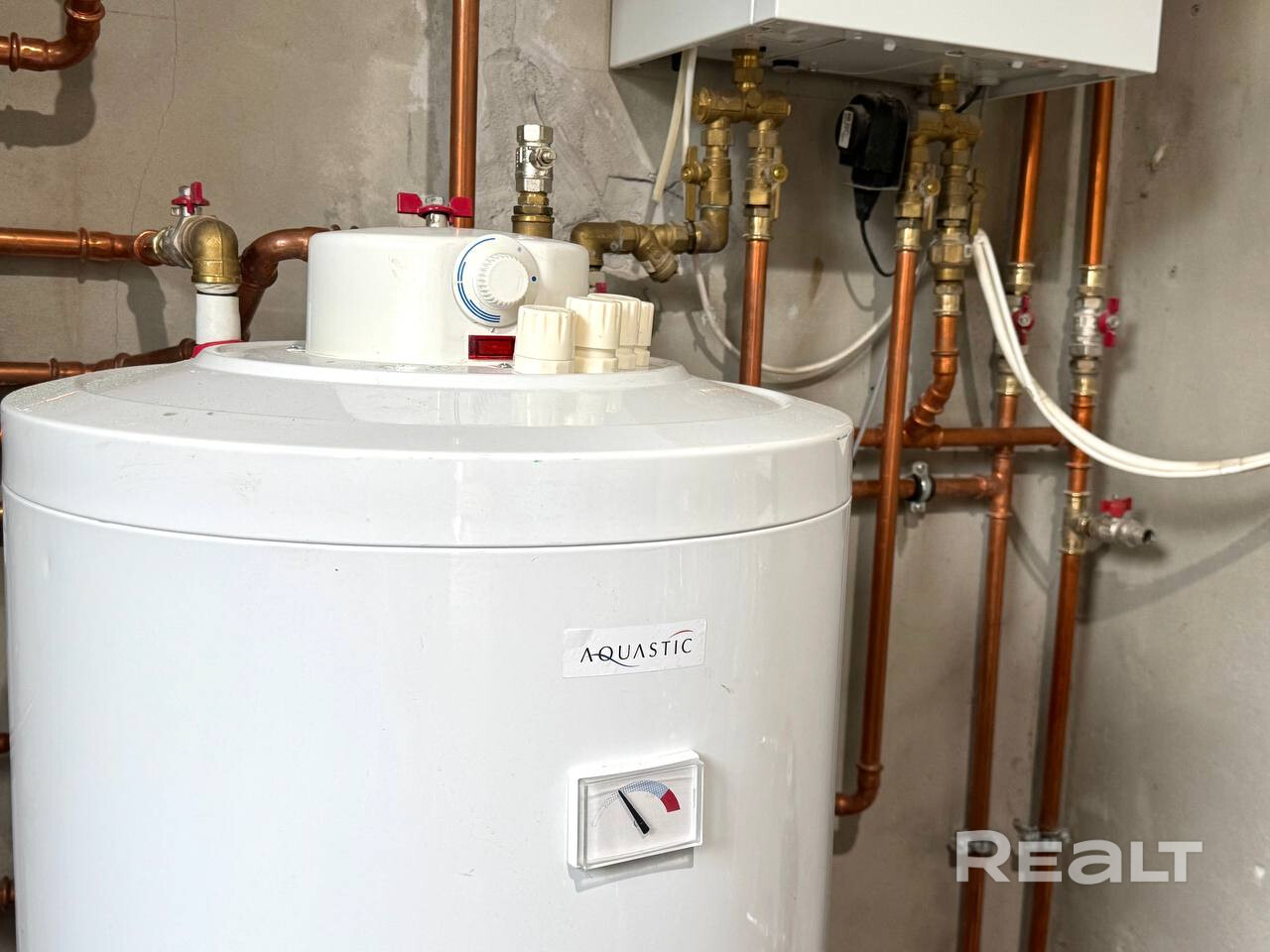 - современная котельная с погодозависимой автоматикой, газовым DAEWOO и электрическим PROTHERM котлами, стальные водогазопроводные трубы, пресс-системы из меди. Установлены стальные радиаторы отопления на двух этажах.