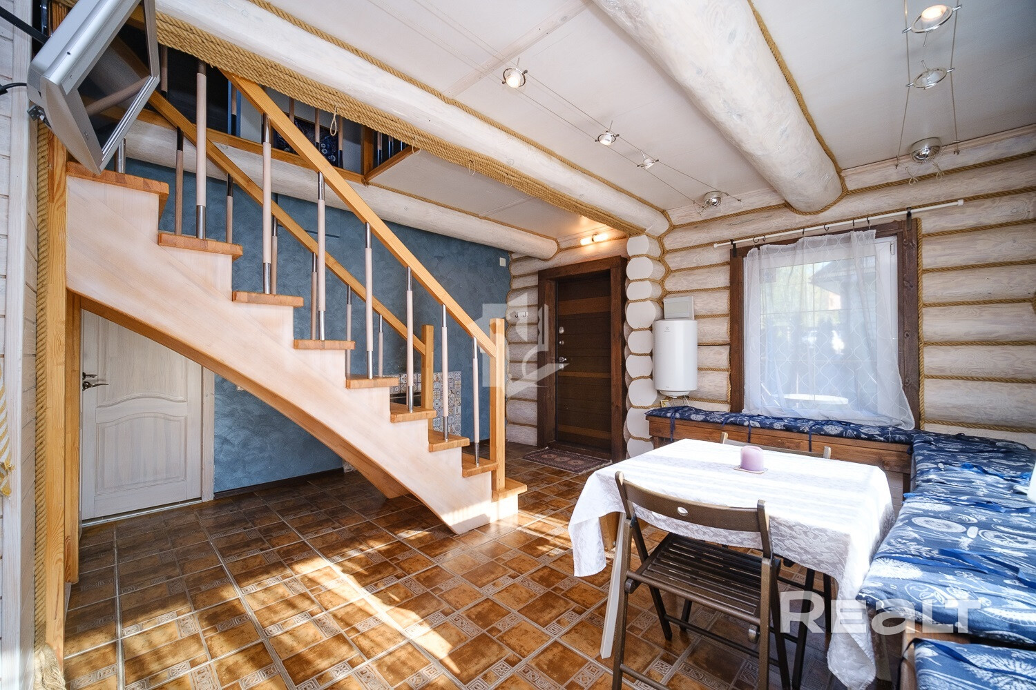 Дом: построен из добротного бревна, стильный современный ремонт из европейских материалов, оригинальная планировка
