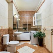 Две оборудованные кухни с техникой Smeg, Bosch, NEFF, Liebherr, DeLonghi, JURA, Miele, системой обратного осмоса, телевизорами LG OLED и Apple TV 4K. В санузлах установлена сантехника ведущих европейских брендов — Италия, Германия, Испания.