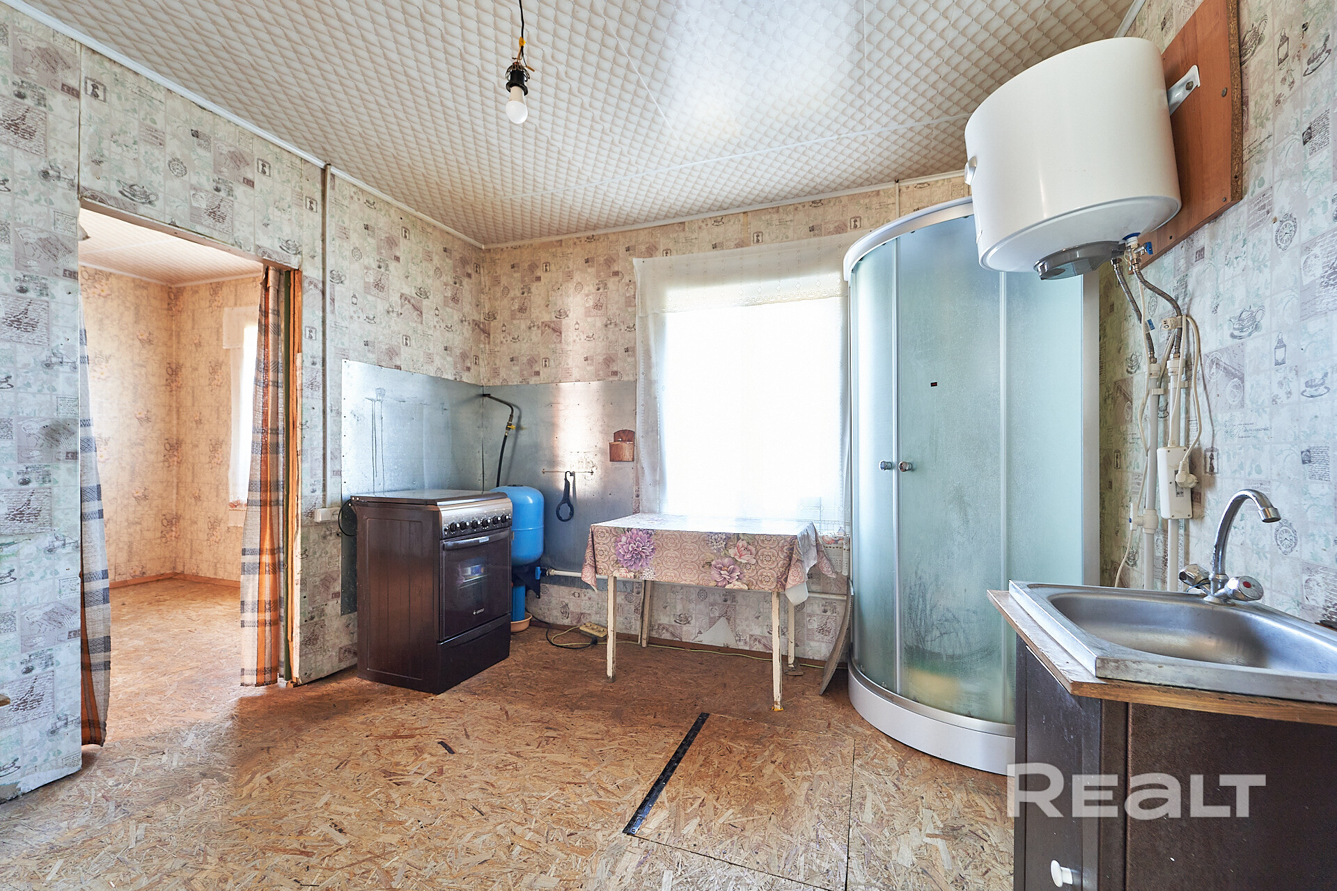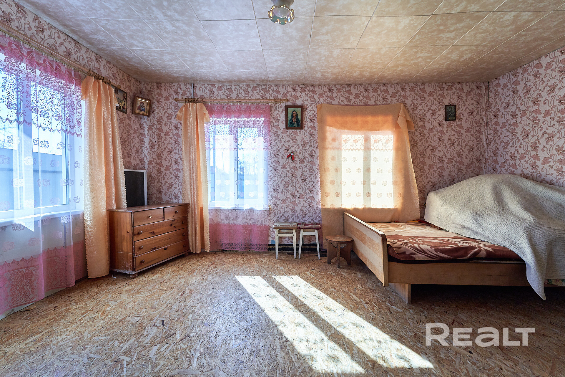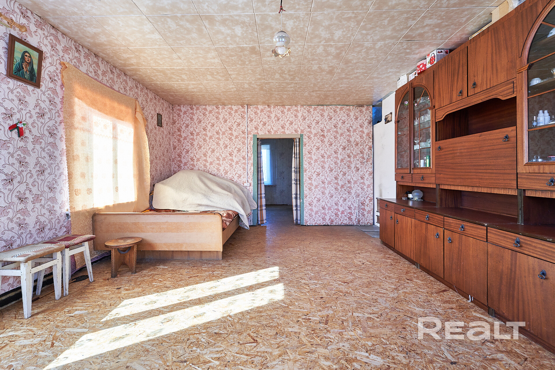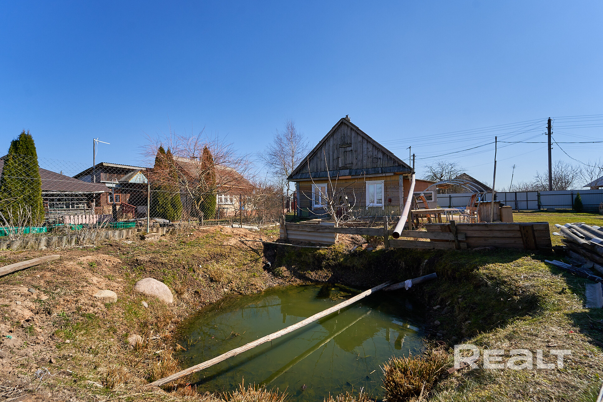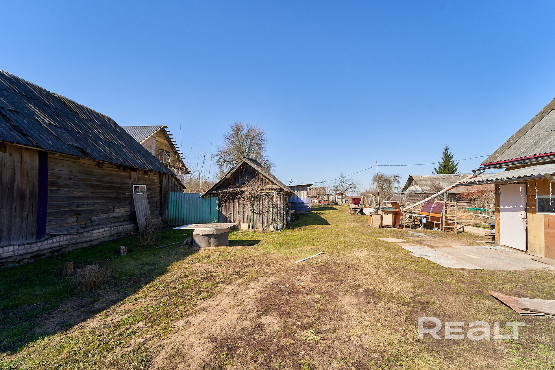 На участке расположен бревенчатый дом 1960 г.п. Общая площадь 51,9 кв.м., площадь по СНБ 59,9 кв.м, жилая площадь 32.6 кв.м., кухня 9.7 кв.м. Ровный участок с плодородными деревьями и сажелкой, площадью 0,25 га в частной собственности. Размер участка: ширина 22 кв.м, длина 98 кв.м.