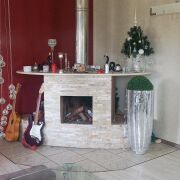 На территории есть барбекю зона с елочками, альпийская горка , плодовые деревья .Гостинная 30 кв.м. ( гипсокартон , ламинат +плитка, подогрев пола инфракрасный) + дизайнерский камин в стиле хай-тек ( мрамор, камень, металл) .