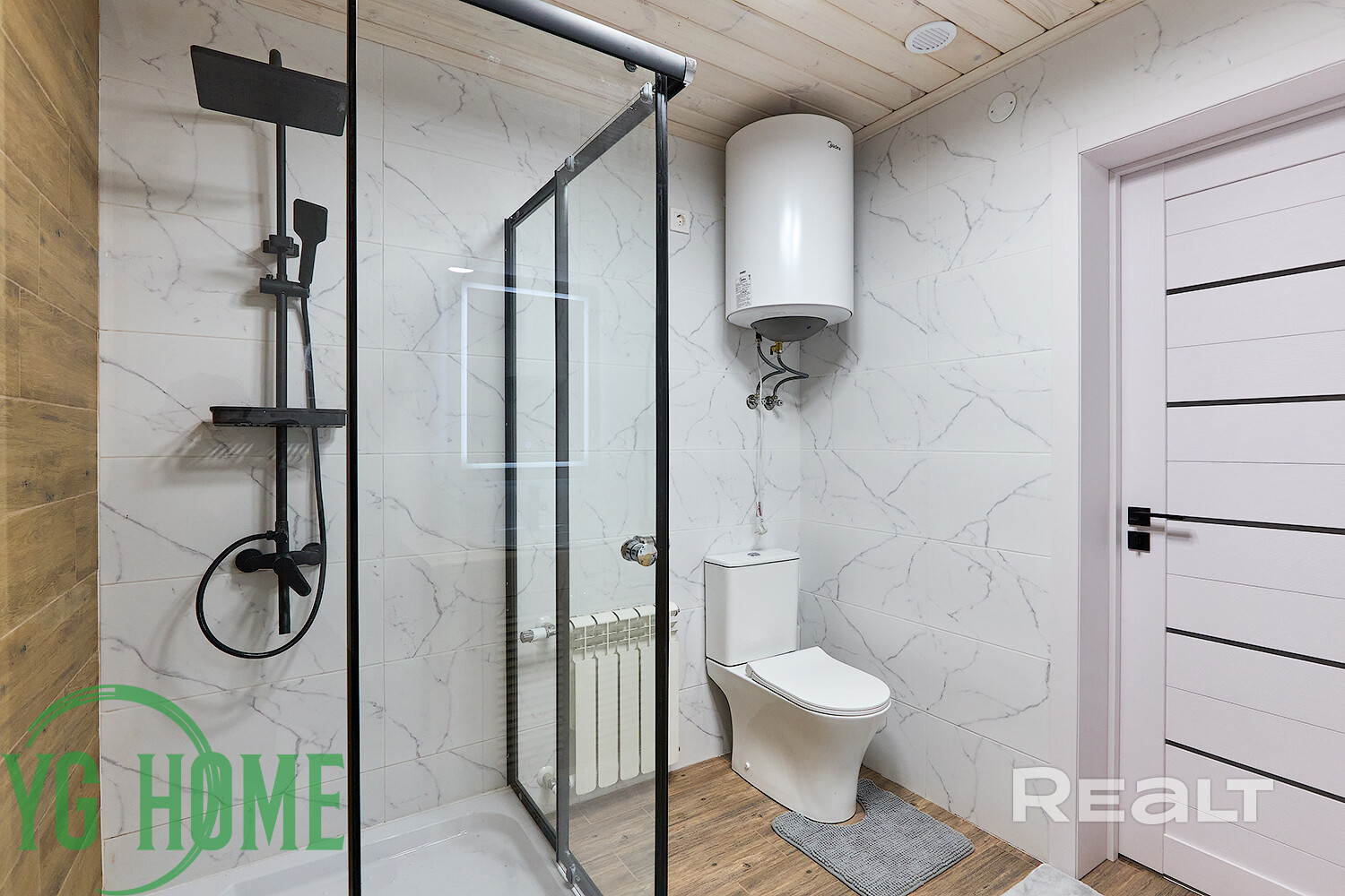 Отличная планировка - уютная кухня-гостиная с выходом на большую террасу, 2 спальни, санузел с сауной, топочная (кладовая)
