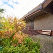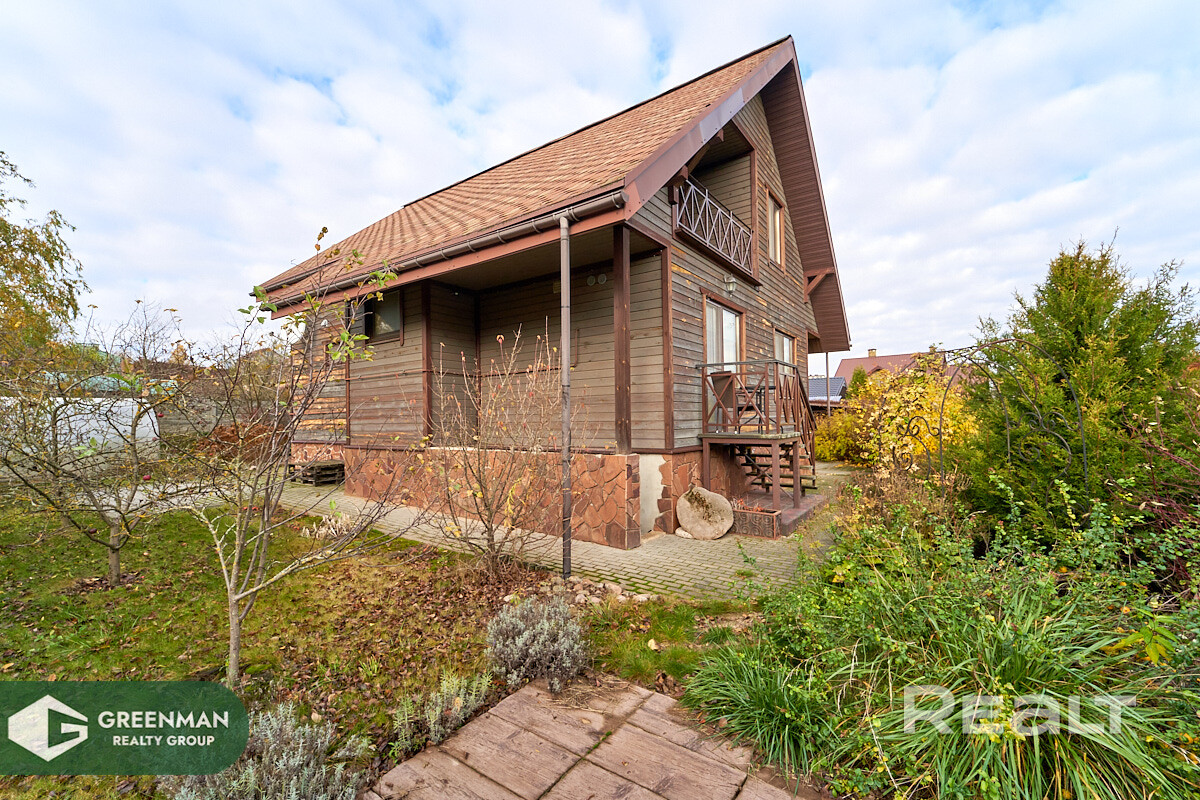 Теплый каркасный дом каркасный, обшит деревом; крыша – мягкая черепица, деревянные энергоэффективные стеклопакеты; обустроенный подвал 33,1кв.м. с кухней и баней 41,8 кв.м.