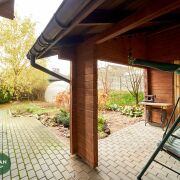 На участке расположена беседка с обустроенной «зоной барбекю». Крытая площадка для двух автомобилей, хозпостройки.