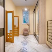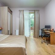 - Просторная входная группа с зимним садом; просторная кухня; гостиная с выходом на террасу; 2 спальные комнаты, одна из них - с личной гардеробной; 2 санузла: один объединен с душевой, второй санузел объединен с ванной.