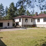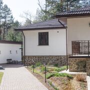 - Банный комплекс площадью 62 кв.м. включает в себя комнату отдыха, помывочную, санузел, парную комнату. Баня на дровах. По полу банного комплекса уложена система теплых водяных полов. Отапливается газовым котлом жилого дома. Рядом с баней предусмотрена зона для барбекю.