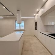 · Сердце дома — кухня-гостиная 48,8 м2: Это пространство, где собирается вся семья. Поток света из больших окон, выход на собственную террасу... Здесь уже установлена роскошная кухня со встроенной техникой. А главный акцент — «островок счастья» с индукционной плитой. Это место, где готовить — одно удовольствие, ведь вы не оторваны от общения с гостями и близкими.