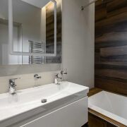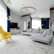 Выполнен дизайнерский ремонт из качественных материалов, встроенная техника и сантехника премиум-сегмента.