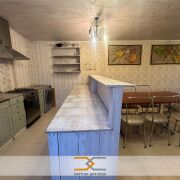 - 1-й этаж: кухня 15 м.кв., кухонный гарнитур дуб-массив, техника: газовая панель и духовой шкаф, вытяжка NEFF (производство Германия), холодильник и телевизор TOSHIBA (производство Япония); гостиная 46.9 м.кв с камином, обеденной группой, сервантами, кожанным диваном и домашним кинотеатром LG; 2 спальни по 15 м.кв; санузел – инталляция производство Испания и Италия, душевая кабина, стиральная машина LG; гардеробная 14.4 м.кв с сушилкой автоматом производства Bosch находится рядом с библиотекой и шкафом-купе.