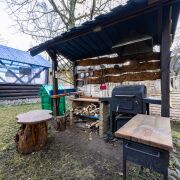 Две комнаты (33,5м2, 13,2м2). Установлен камин на твердом топливе.
