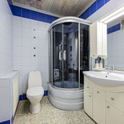 Санузел с «теплым» полом площадью 7,9м2, установлена массажная ванна-джакузи. Парилка 5м2, (топится дровами).