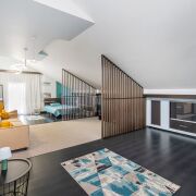 представляет собой пространство в 72 м2, разделённое на три зоны — спальню, зону отдыха, кабинет, и дополнен собственным санузлом.