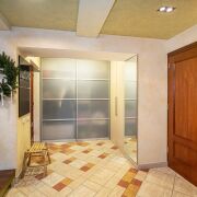 Стены оформлены декоративной штукатуркой и рисовой бумагой с воском.