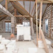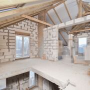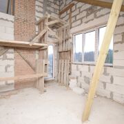 Прочные стены 40 см, железобетонные перекрытия и армирующий пояс.
