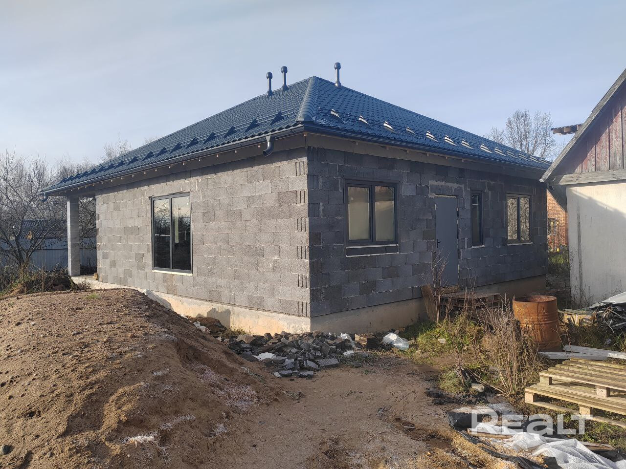 Современный, теплый дом с хорошей планировкой, просторной терассой в ст Буда недалеко от Минска. Завершено возведение теплого контура.
