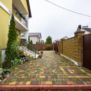 - Стоянка на 3 авто, выложенная разноцветной тротуарной плиткой