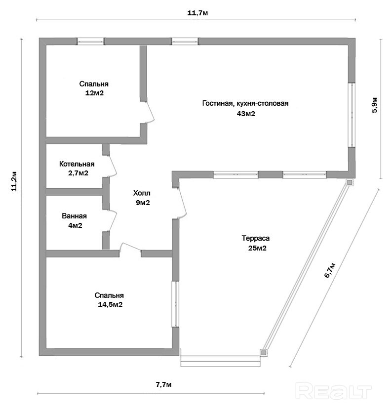 · Общая зона: просторная гостиная-столовая.