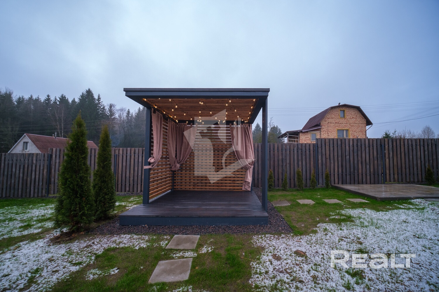 · Обустроенная стоянка для четырех автомобилей с электрифицированными воротами, беседка и зона для барбекю.