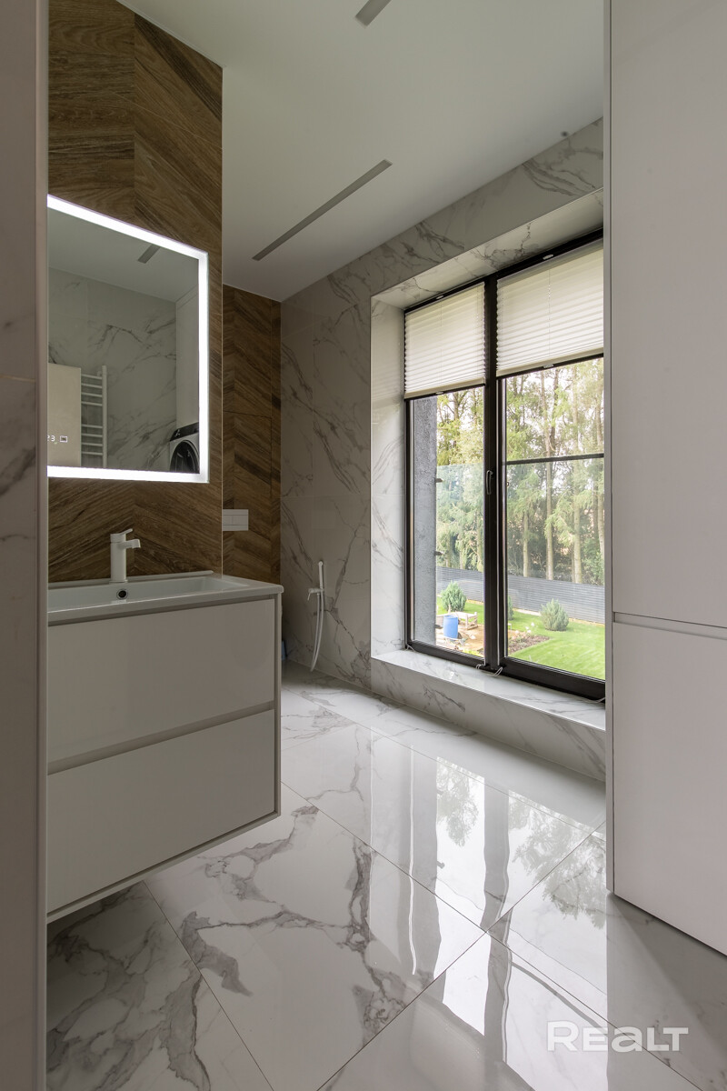 Со второго этажа выход на просторную террасу, которую можно использовать как chill-зону, отдыхать на шезлонгах, креслах-коканах или просто расположить игровую. В дизайне использовались натуральные материалы дерево и камень с декоративными элементами, такими как матовое стекло и термостойкий стеклоламинат. Совершенно новая кухня со всей необходимой техникой, обеденная группа и мягкая мебель, выполненная на заказ и подобранная под этот эксклюзивный дом. Цокольный этаж предназначался под хамам, финскую сауну и бассейн, но вы можете придумать там всё, что угодно, все инженерные коммуникации так же в цокольном этаже. Двухконтурный котёл, многоуровневая система очистки воды, газ, местная канализация септик. Территория благоустроена, стоянка для двух авто с автоматическими воротами, освещение по периметру участка и на фасаде, палисадник и открытый бассейн. В посёлке имеется вся инфраструктура, до Минска 10 минут езды на авто, так же ходят рейсовые автобусы и маршрутки. Можно ещё очень долго рассказывать вам об этом эксклюзивном доме, территории и сказочном месте, но лучше вам всё увидеть своими глазами, ждём на презентацию в любое время! Поможем продать вашу недвижимость для покупки нашего коттеджа!