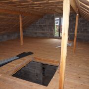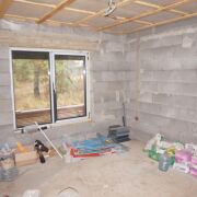 Дом выполнен из керамзито-бетонных блоков, что обеспечивает хорошую теплоизоляцию и устойчивость. Крыша металлическая, долговечная и устойчивость к погодным условиям.