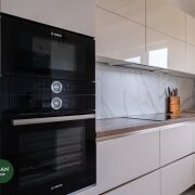 Большая гостиная, светлая кухня со всей встроенной техникой качественных производителей, две изолированные спальни, детская комната с отдельным кабинетом, гардеробная и множество зон хранения.