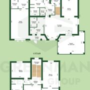 Просторная гостиная (35 м.кв.), кухня, санузел, техпомещение, кладовые, прихожая, выход на участок, встроенный гараж.