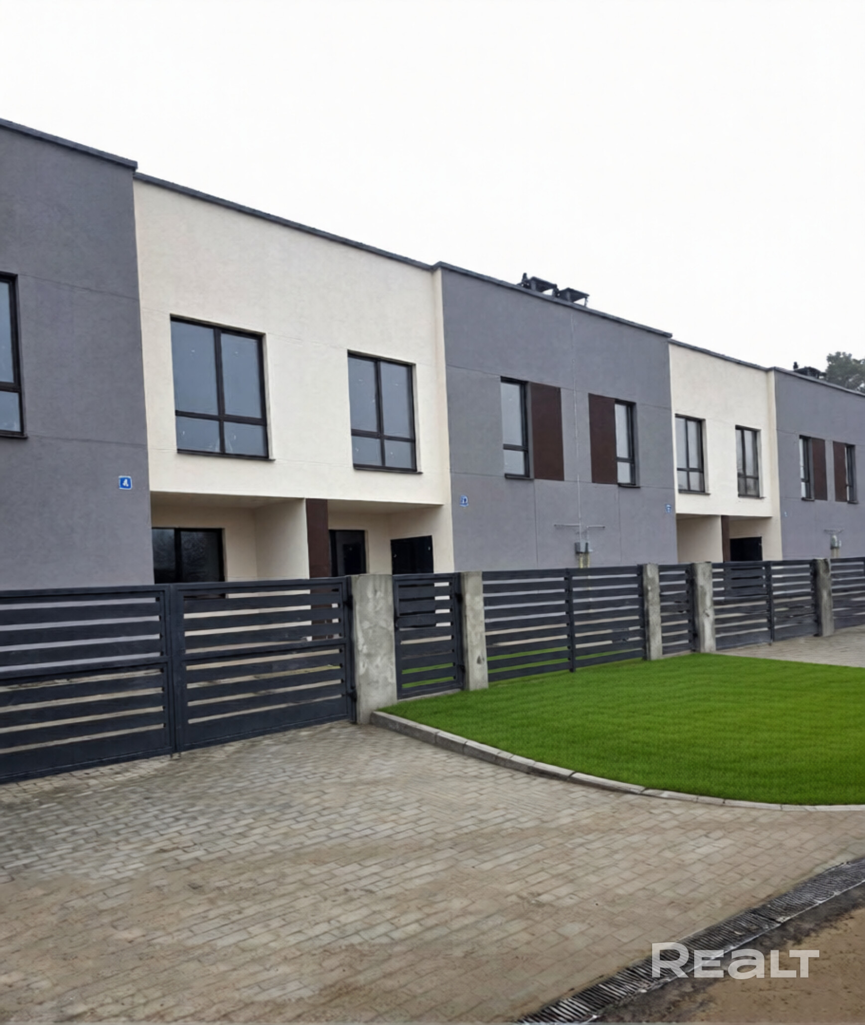 - Подъезд к двухэтажному таунхаусу с твердым покрытием (асфальт);