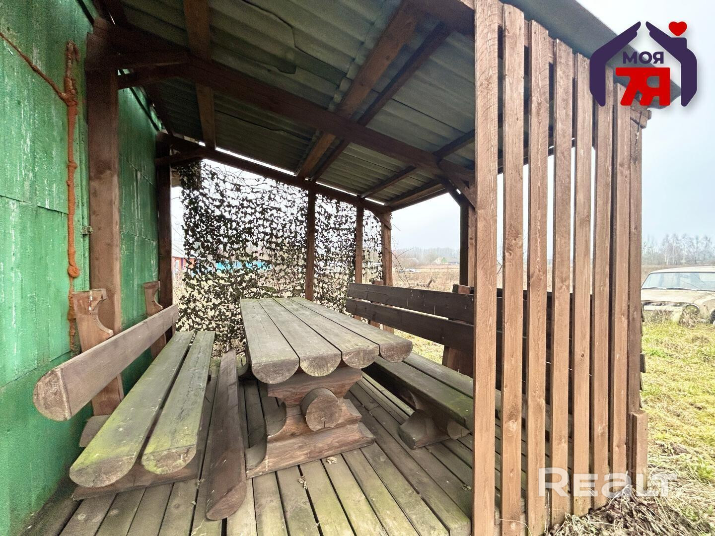 - Продумано место для отдыха где располагается беседка из бруса. Также новым владельцам остается теплица из поликарбоната.