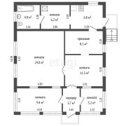 Дом включает 5 жилых комнат, санузел в доме и 2 отдельных входа, что позволяет удобно организовать пространство для большой семьи или нескольких поколений.