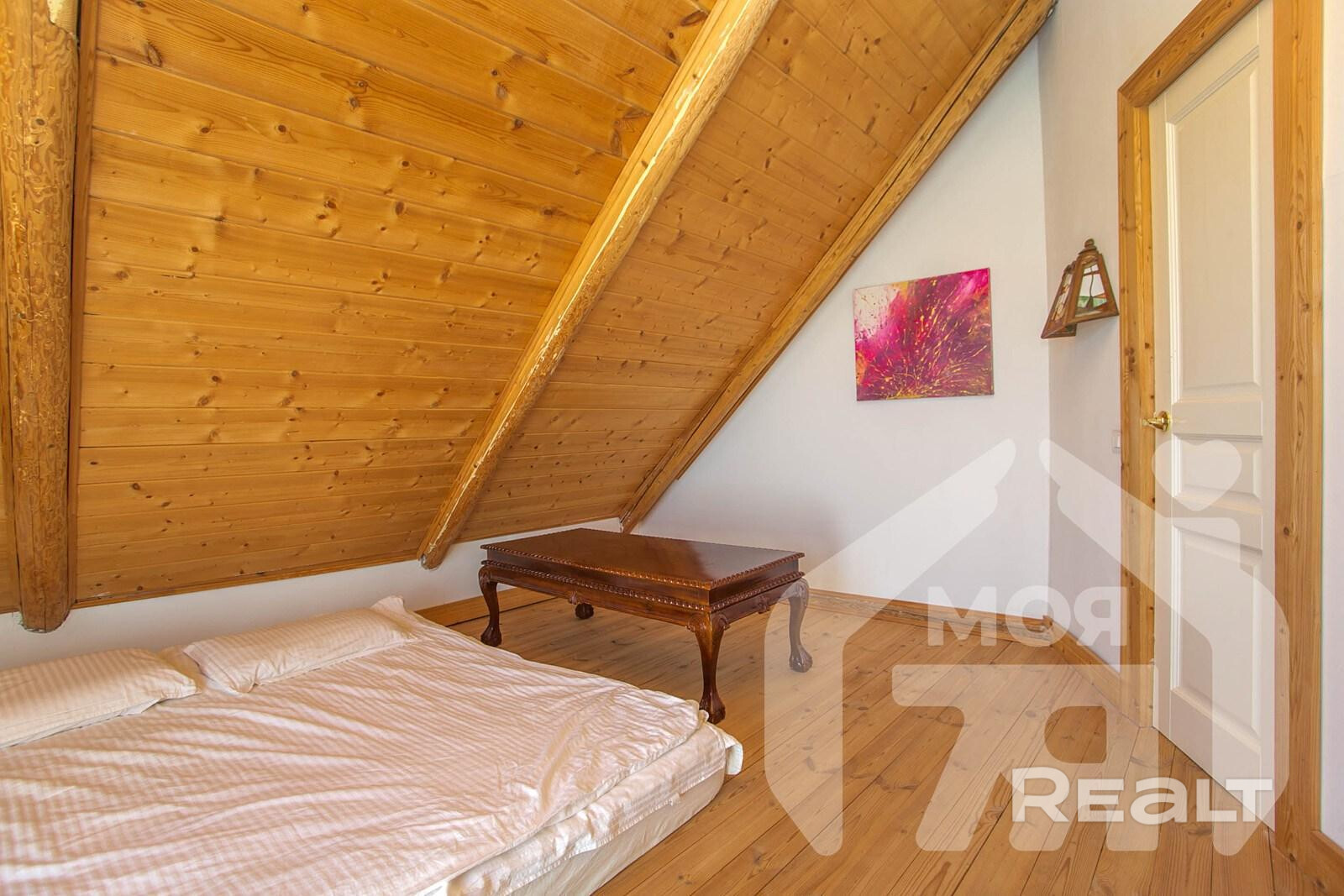 - В доме 6 просторных комнат с панорамными окнами, наполняющими помещения естественным светом и воздухом. На мансардном этаже предусмотрены скрытые места для хранения вещей – отличное решение для поддержания порядка. С балкона открывается живописный вид на Минское море: здесь особенно приятно проводить уютные вечера с книгой или чашкой чая. Кухня оснащена всей необходимой техникой: вытяжкой, духовым шкафом и варочной панелью, посудомоечной машиной.