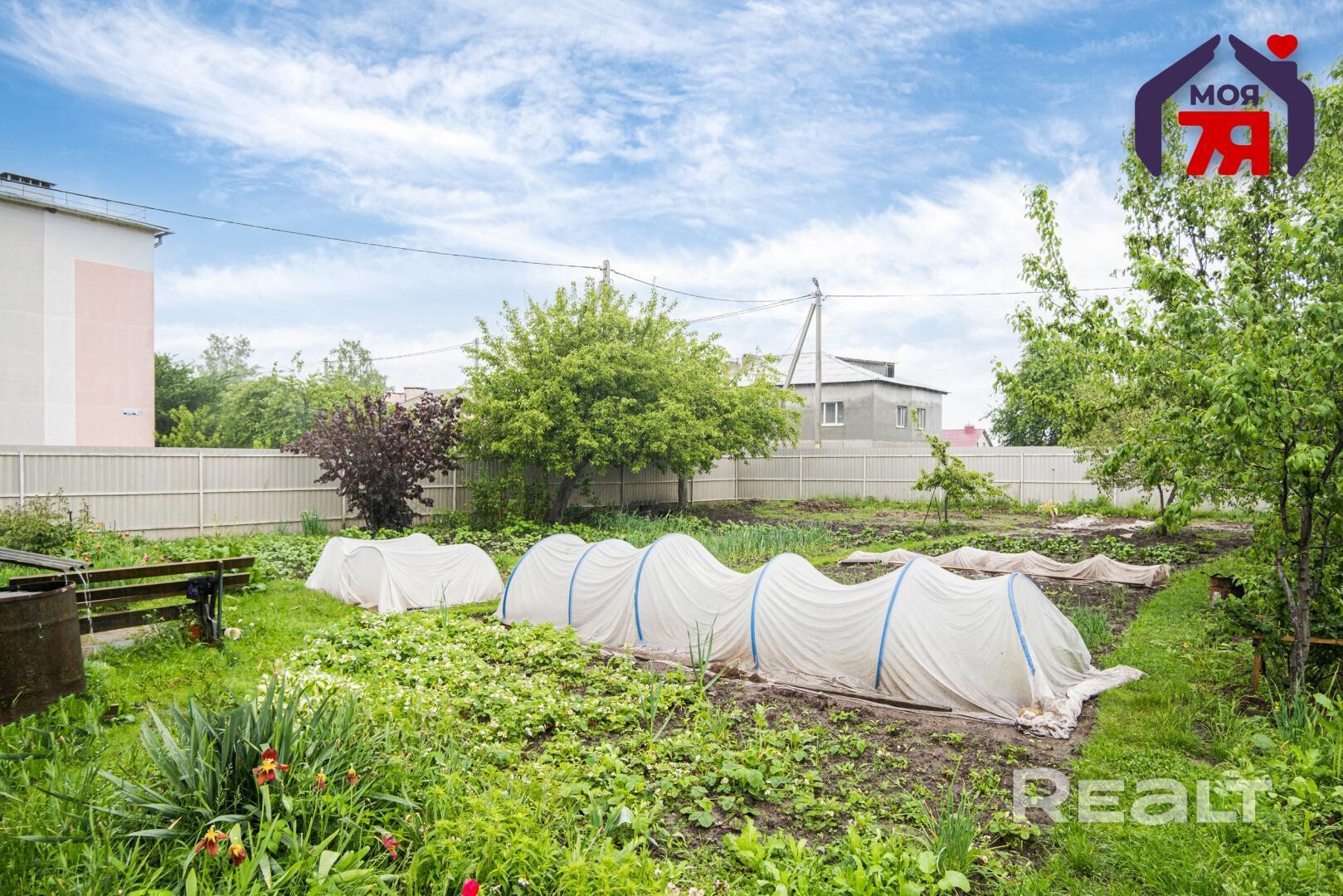 - Особое внимание заслуживает большой участок площадью 16,88 соток. Земля в частной собственности, забор стоит в установленных границах участка. Все вспомогательные постройки (сарай и просторный погреб для хранения) зарегистрированы. На участке разбит ухоженный огород, растёт плодоносящий сад, есть ульи.