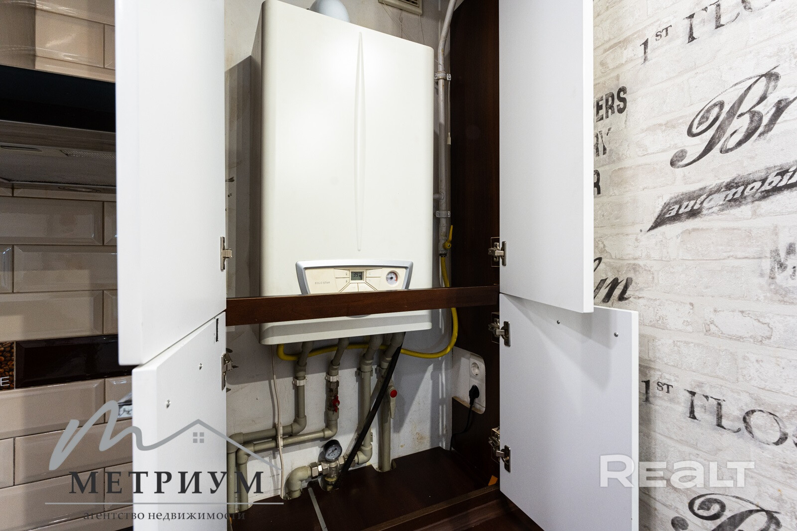 В доме все необходимые коммуникации для жизни: электричество, газ (установлен газовый котел), центральный водопровод, центральная канализация.