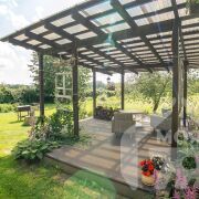 -Красивая просторная и лаконичная терраса на 20 кв.м.- изюминка дома, где можно устроить банкет для 20-ти гостей или просто наслаждаться природой, сидя с бокалом вина в кресле. С неё открывается захватывающий вид на Девичью гору и руины храма, построенного в 18 веке. Здесь вы будете устраивать завтраки, обеды и вечера, которые не забудутся.