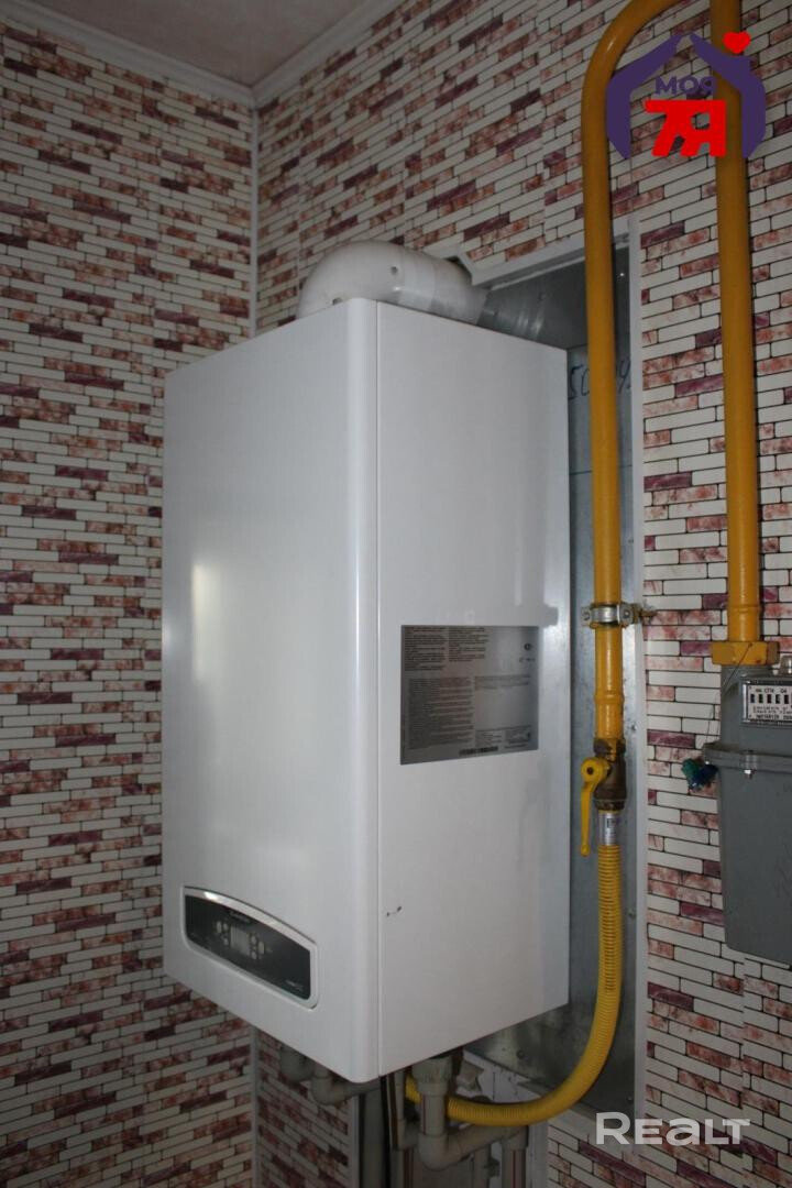 - В доме проведены все необходимые коммуникации. За отопление отвечает двухконтурный газовый котёл. В доме есть санузел.
