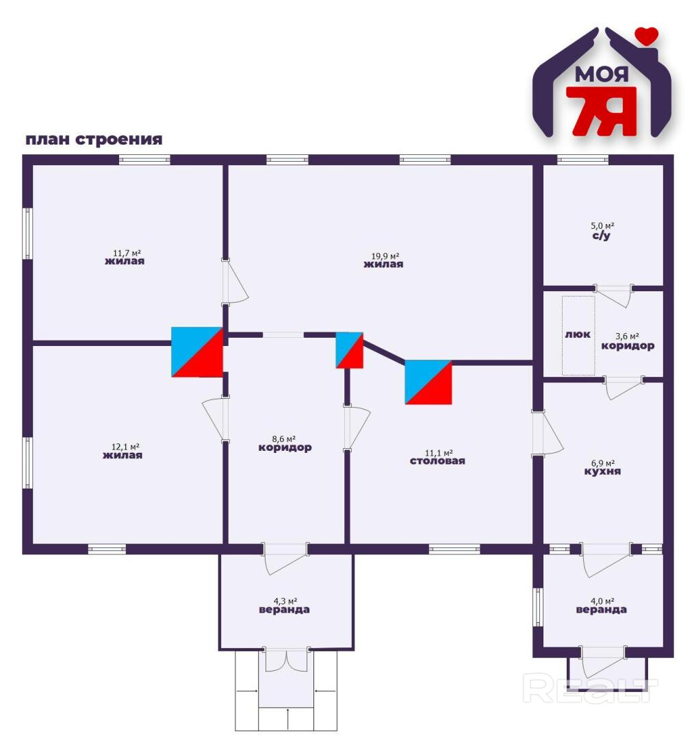 - Общая площадь дома составляет 78,9 кв.м., из которых 54,8 кв.м. занимают жилые помещения. Это просторный и уютный дом для комфортного проживания в любое время года.