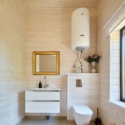-Современная топочная с погодозависимой автоматикой, газовый котёл с бойлером, насосные группы, водяные тёплые полы, датчики управления температурой;