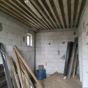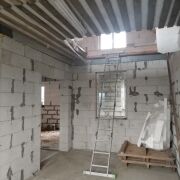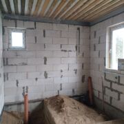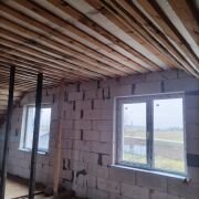 -Газосиликат "Забудова", польская металлочерепица, дом утеплён полистирольными плитами 70 мм.