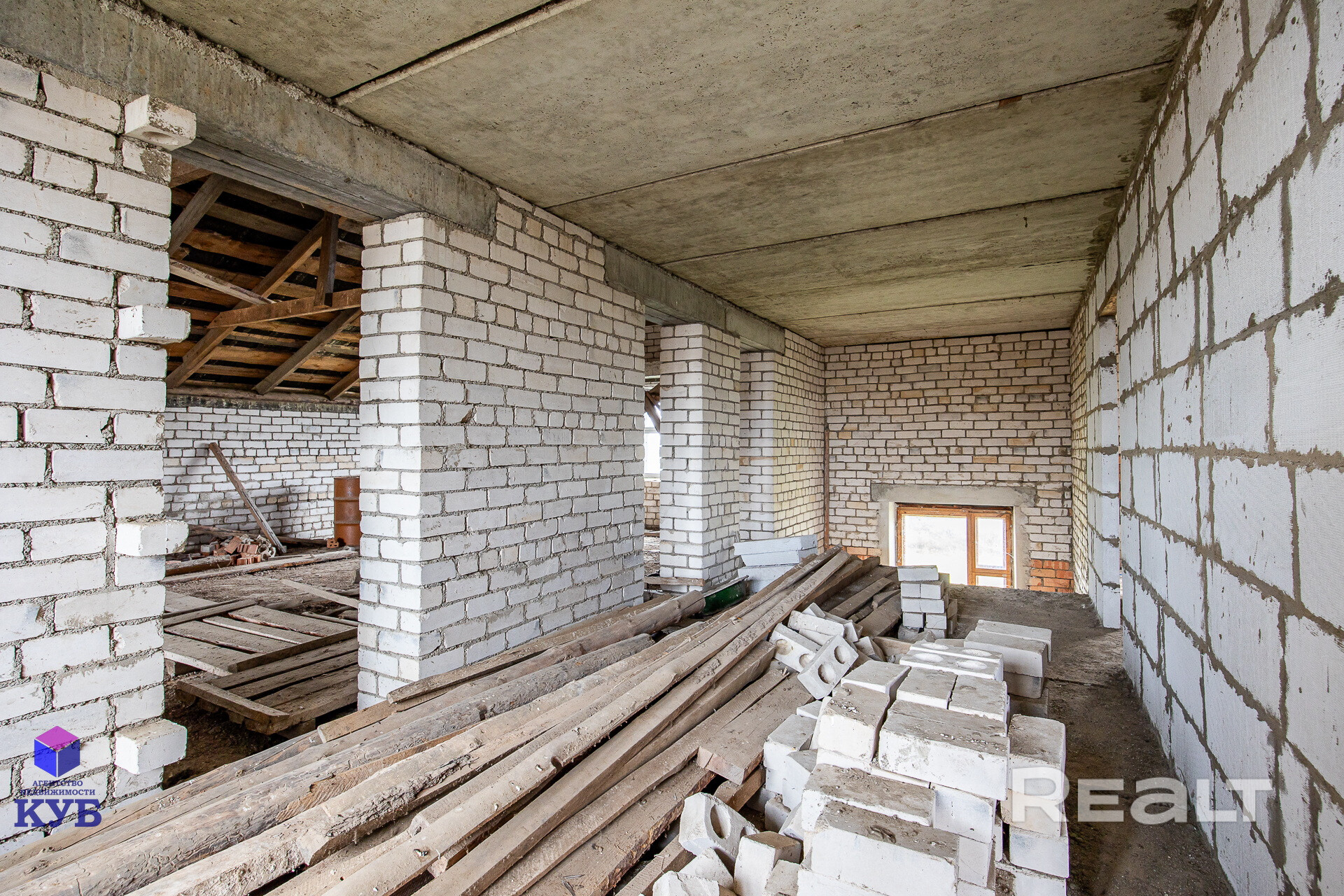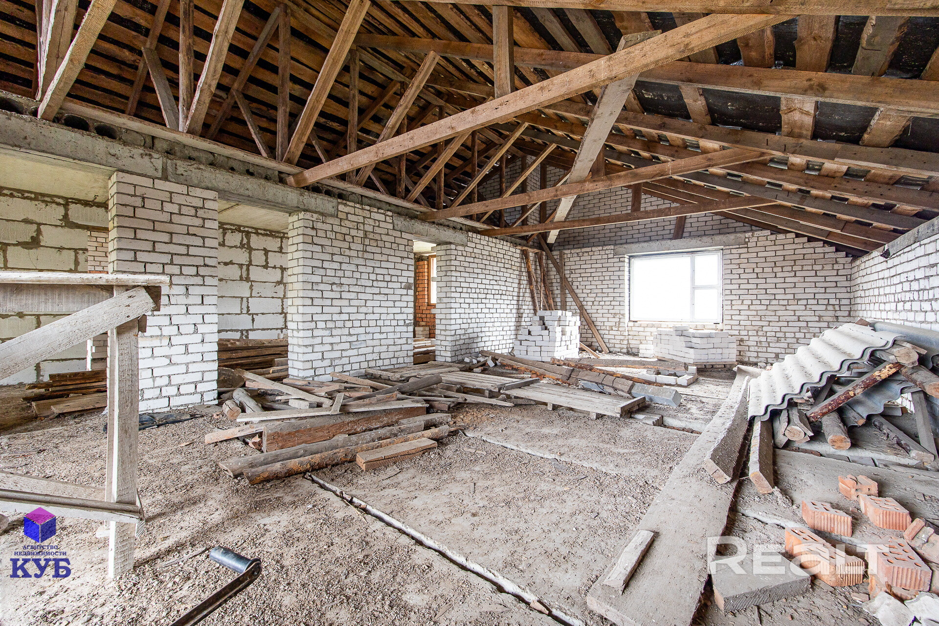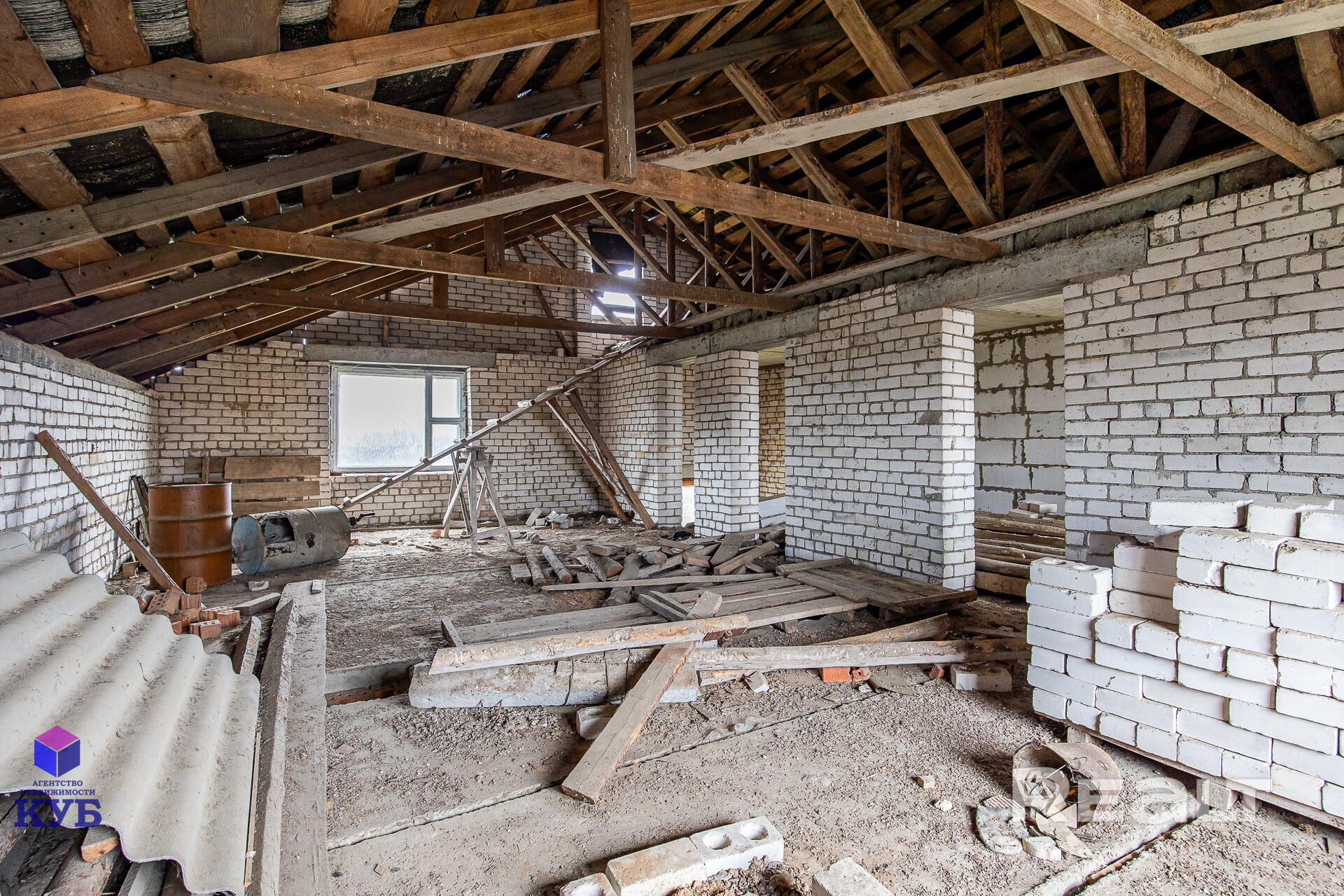✅ Фундамент: ж/б плиты ФБС толщиной 40 см. Стены дома из силикатного кирпича (толщина стены в 2 кирпича), перекрытия между этажами – ж/б плиты, стеновые перегородки выполнены из кирпича и газосиликатных блоков, частично оштукатурены. Кровля – шифер, стропильная система – качественный брус, обрешётка.
