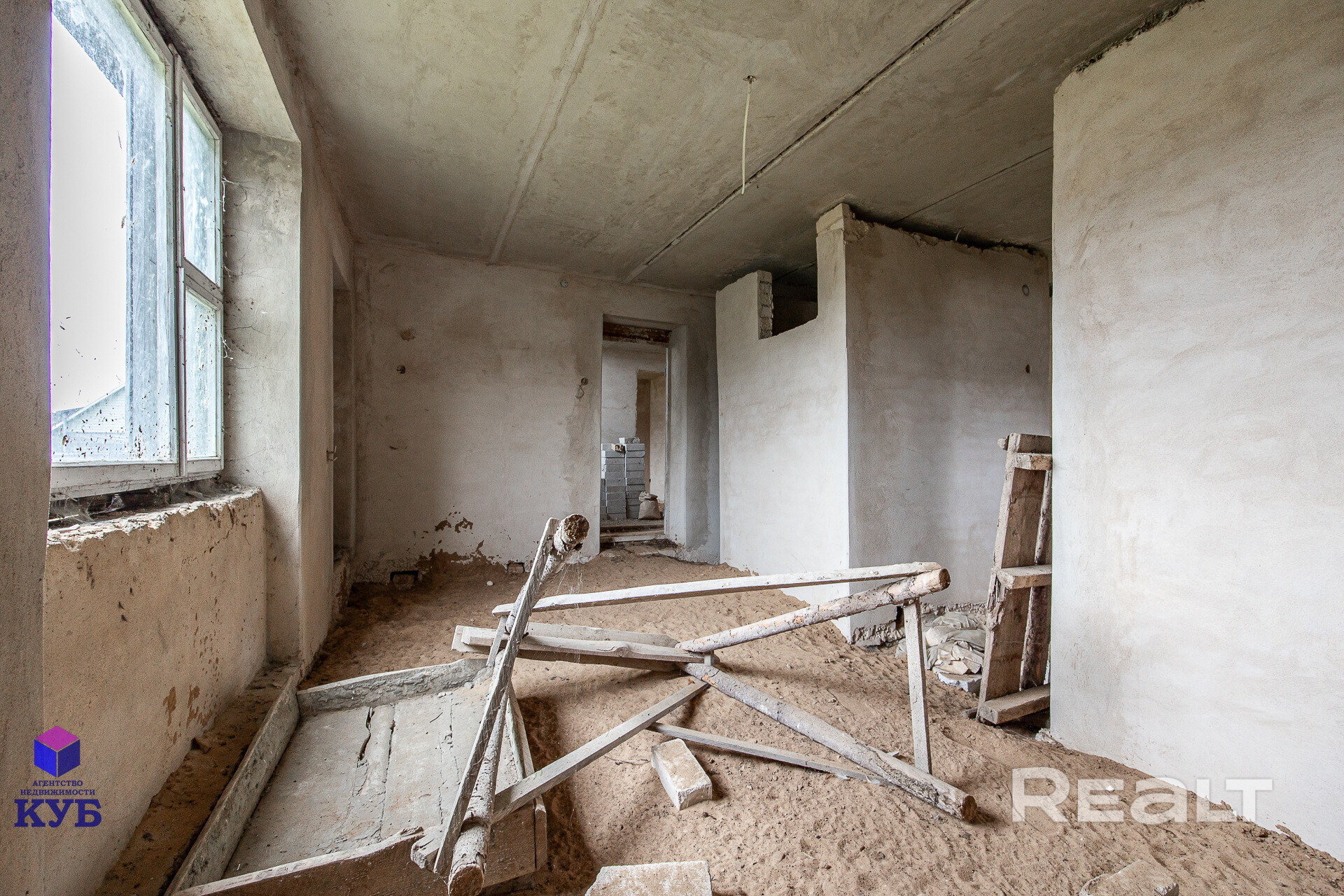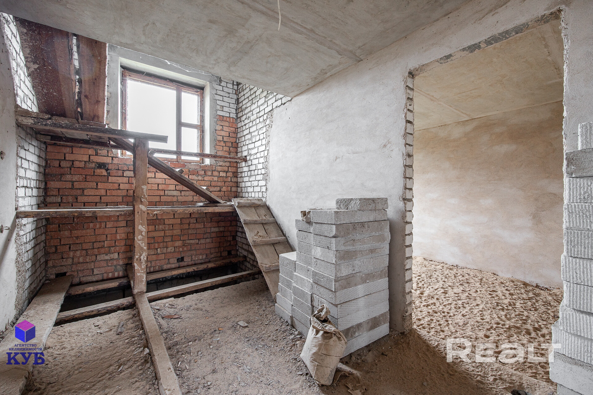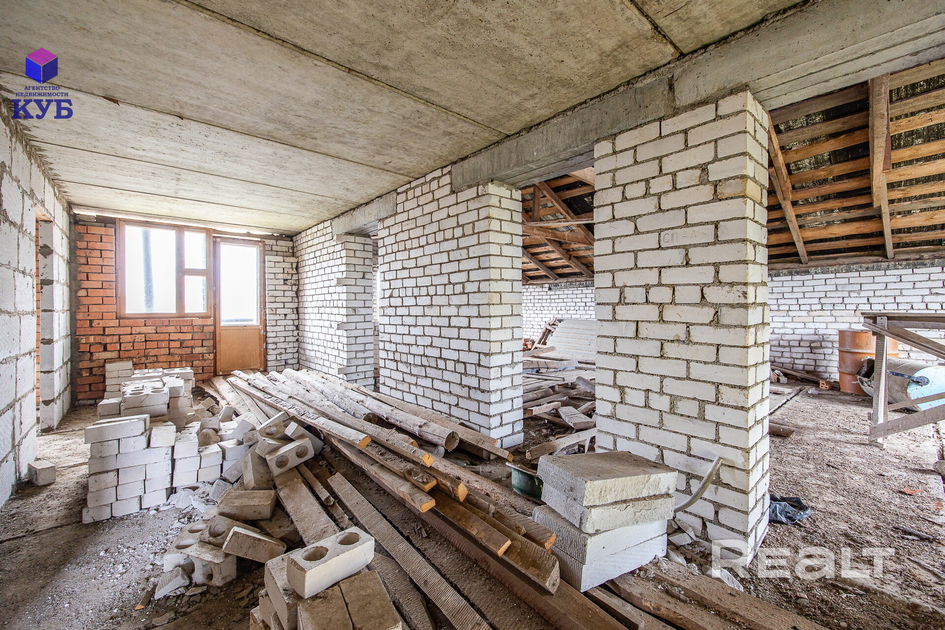✅ Фундамент: ж/б плиты ФБС толщиной 40 см. Стены дома из силикатного кирпича (толщина стены в 2 кирпича), перекрытия между этажами – ж/б плиты, стеновые перегородки выполнены из кирпича и газосиликатных блоков, частично оштукатурены. Кровля – шифер, стропильная система – качественный брус, обрешётка.