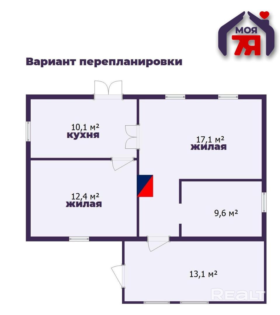 - Дом имеет 2 входа - гостевой, и второй - выход на задний двор, планировка комнат практичная и удобная. На заднем дворе есть бетонные сваи для обустройства террасы.