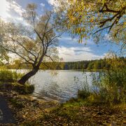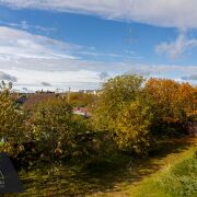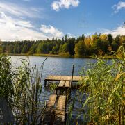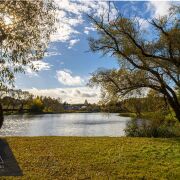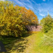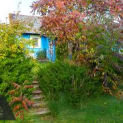 Огорожен, засажен газонной травой и цветами, есть декоративные деревья и кустарники. В шаговой доступности – два озера: одно с дамбой для рыбалки, другое с пляжем для купания.