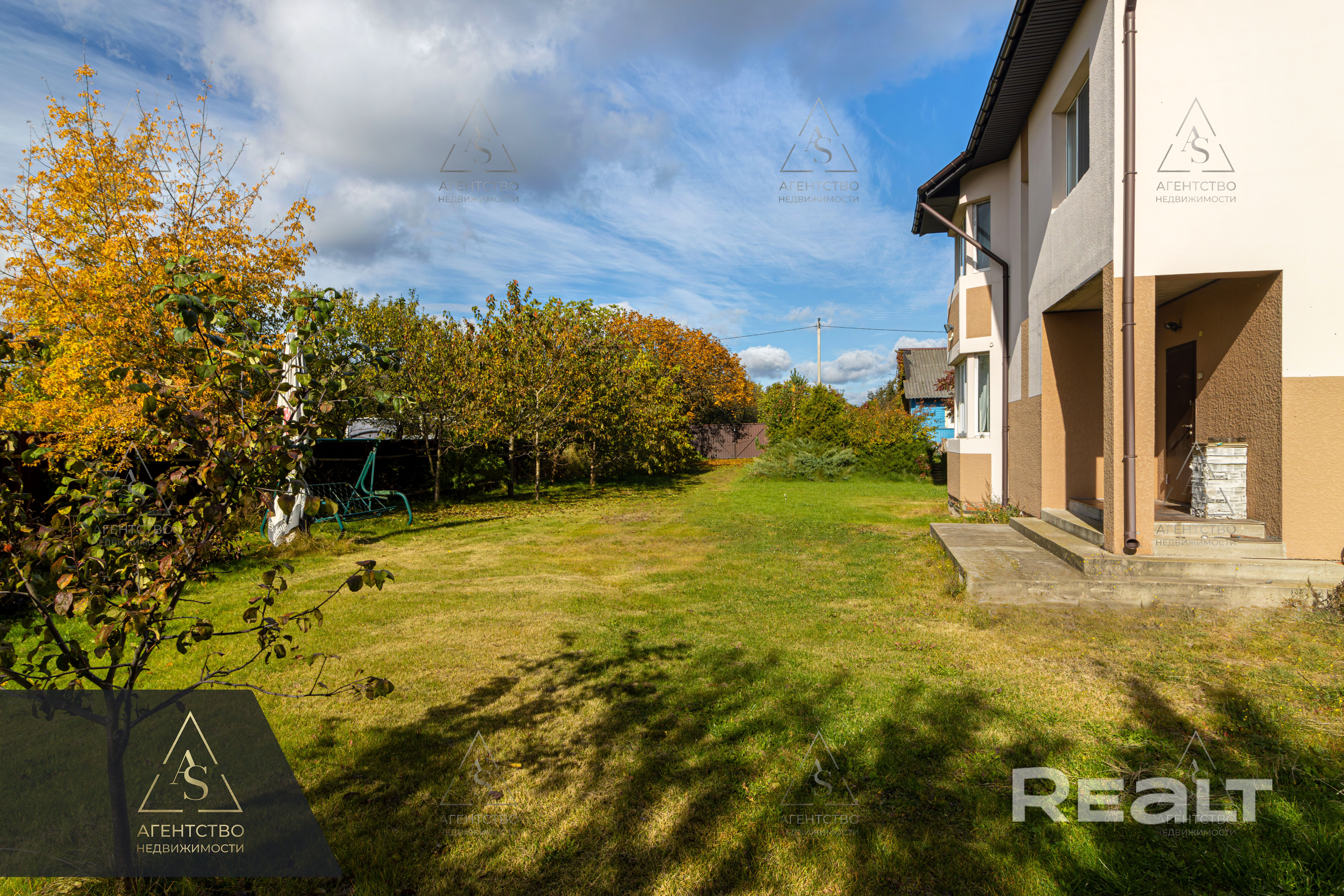 Продаются 2 дома на участке 17,5 соток в 15 км от Минска: просторный коттедж и уютный деревянный домик. Оба с коммуникациями, участком с газоном и редкими деревьями. Отличное место для жизни и отдыха всей семьей.